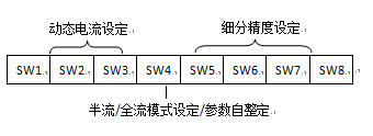 DMA860H驱动器采用八位拨码开关设定细分精度、动态电流、静止半流以及实现电机参数和内部调节参数的自整定。详细描述如下: