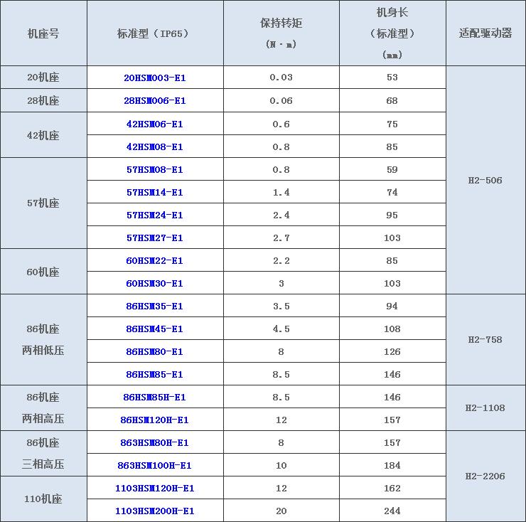 HSM系列混合伺服电机内置增量式光电编码器,提供位置及速度反馈,采用最新矢量型闭环控制技术,从而彻底克服开环步进电机丢步的问题,从而提升机器的加工速度和精度以及降低机器的能耗可靠性。通过有效电流控制,能明显提升电机的高速性能、降低电机的发热程度和减小电机的振动。 产品线涵括20~110机座、0.03NM~20NM的多种机型。