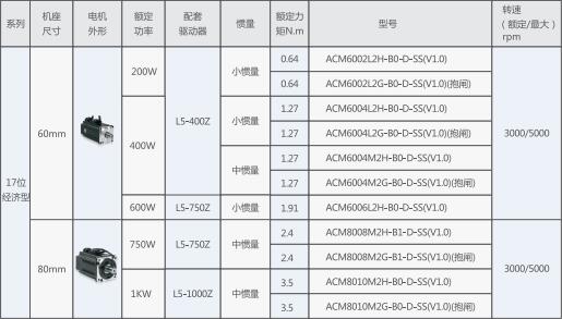 ACM系列伺服电机17位经济型系列介绍