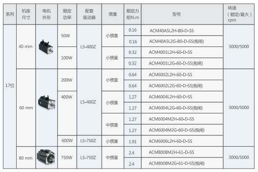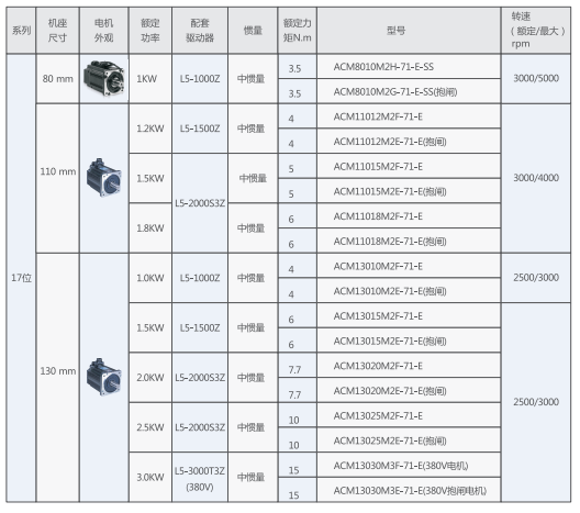 ACM系列伺服电机17位系列介绍